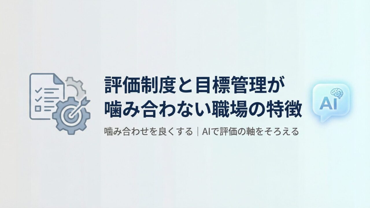 目標は期初に立てる。評価は期末にする。なのに、目標と評価が噛み合っていない——「目標達成より、上司の印象で評価されている気がする」「目標に書いたことと、評価のポイントが違う」そんな違和感を抱えている職場は少なくありません。評価制度と目標管理が噛み合わない職場には、共通する特徴があります。個人の努力のせいにする前に、制度の設計や運用に目を向けると、改善のヒントが見えてきます。本記事では、評価制度と目標管理が噛み合わない職場の特徴を整理し、噛み合わせを良くする考え方と、ツール活用のヒントをお伝えします。